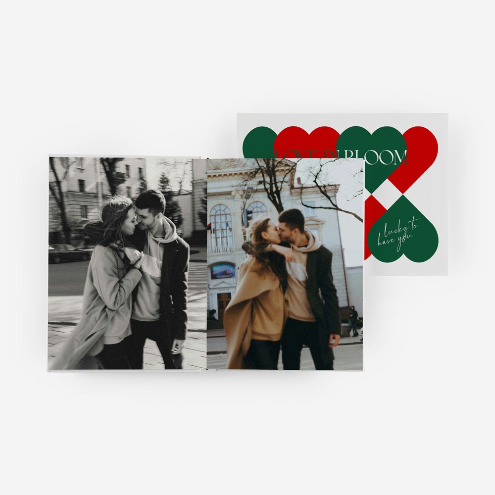 Vibrante, gráfico e cheio de significado, o álbum Love in Bloom foge ao romantismo clássico para abraçar um design moderno de padrões geométricos. Com corações vermelhos e verdes que se entrelaçam numa harmonia perfeita e a mensagem "lucky to have you", este tema é dedicado a quem quer celebrar a sorte de ter encontrado a sua cara-metade com um visual arrojado e contemporâneo.